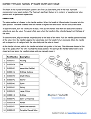 The Dupree Twis-Loc valve was originally developed and marketed as the Owens Valve in 1964, and it has been in production ever since. The Twis-Loc Valve has been installed by many manufacturers during this time such as, Airstream, SilverStreak, Bluebird, Newell and numerous other bus and recreational vehicle manufactures.  The Twis-Loc's significant feature is its certainty of operation and valve position with all parts able to be easily replaced.